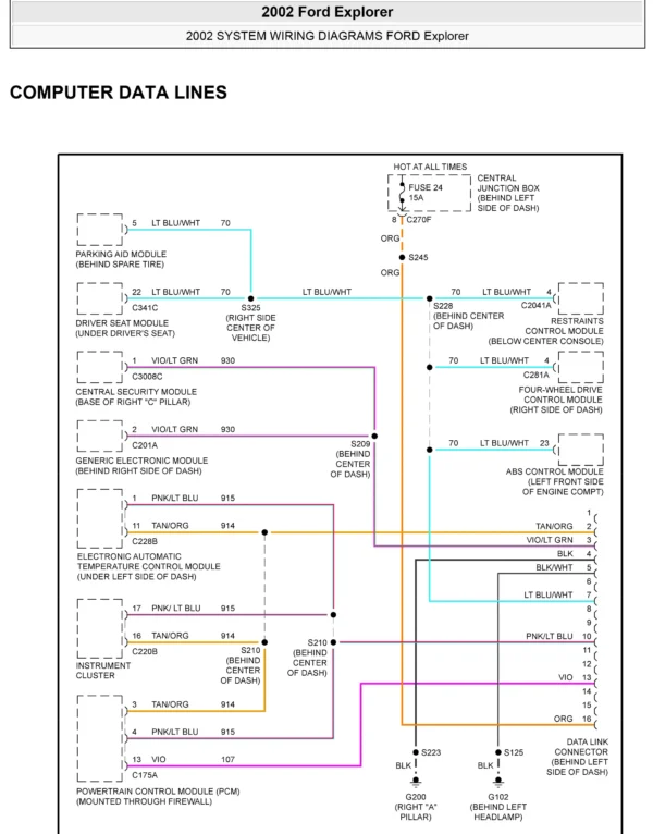 Accede a los diagramas eléctricos completos del Ford Explorer 2002, compatibles con motor 4.0L y 4.6L, en un archivo PDF digital de alta calidad, ideal para diagnóstico, reparación y mantenimiento automotriz.