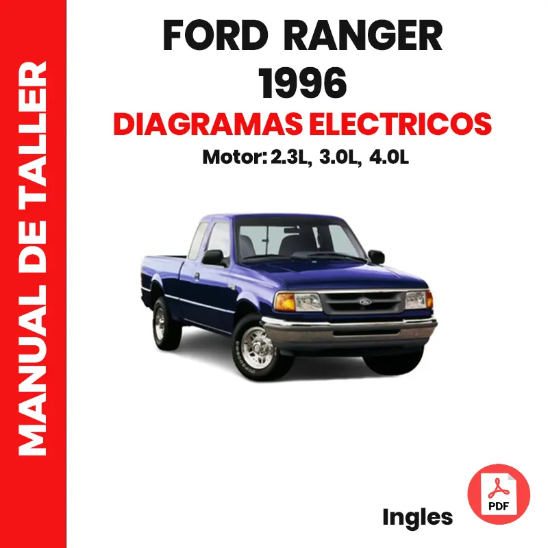 Diagramas Eléctricos Ford Ranger 1996, manual técnico digital descargable para el motores 2.3L, 3.0L y 4.0L. Este documento es una guía detallada que proporciona información precisa y fácil de entender sobre los esquemas eléctricos de los vehículos Ford Ranger. Si eres mecánico, técnico automotriz o propietario de una Ford Ranger 1996, este manual te será útil para comprender las conexiones eléctricas, localización de componentes y procedimientos de diagnóstico relacionados con el sistema eléctrico del vehículo.