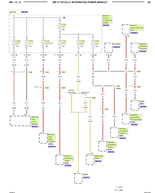 Diagramas de cableado eléctrico Jeep Wrangler 2009 – V6 3.8L (2WD y 4WD) | PDF a todo color